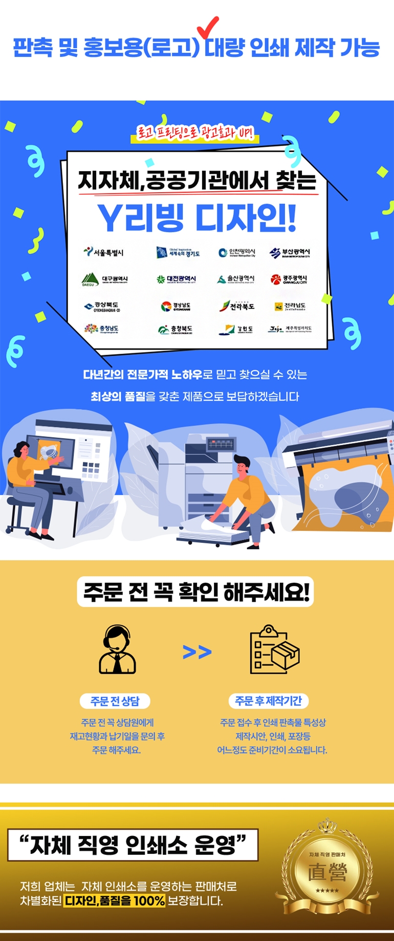 - °í°´ÀÌ Á÷Á¢ µðÀÚÀÎ ÀÛ¾÷ ½Ã ȨÆäÀÌÁö ¹× ´ç»ç¿¡¼­ º°µµ·Î Àü´ÞÇØµå¸®´Â ÀÛ¾÷ À¯ÀÇ»çÇ×À» È®ÀÎÇϽŠÈÄ ÀÛ¾÷ÇϽñ⠹ٶó¸ç, À¯ÀÇ»çÇ× ºÒÀÌÇàÀ¸·Î ÀÎÇÑ Àμâ»ç°í ¹ß»ý ½Ã »ç°í󸮵ÇÁö ¾Ê½À´Ï´Ù.