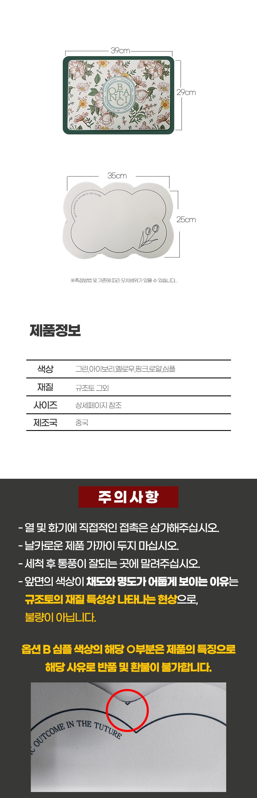 - ±³È¯/¹ÝǰÀº »óǰ¼ö·É ÈÄ 7ÀÏÀ̳» ¿äû ÇØÁÖ¼Å¾ß ÇÕ´Ï´Ù. (ÀÌÈÄ ¿äû½Ã, Á¦Ç°ÇÏÀÚ µî ±³È¯,¹Ýǰ ÁøÇàºÒ°¡ ÇÕ´Ï´Ù)
