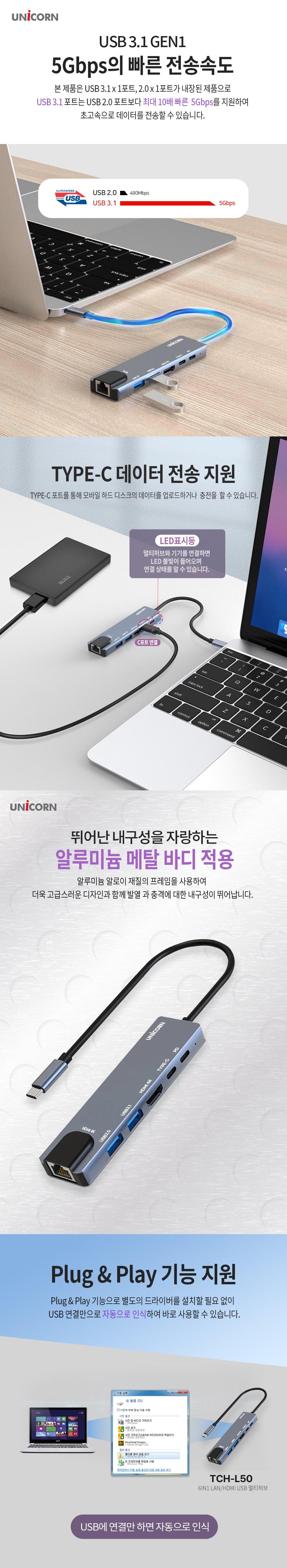 À¯´ÏÄÜ CŸÀÔ 6in1 ¸ÖƼ Çãºê PD 87W LAN/HDMI TCH-L50